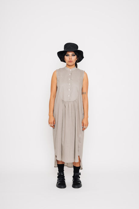 SLEEVELESS BIBBED SHIRT DRESS 001 - FAWN