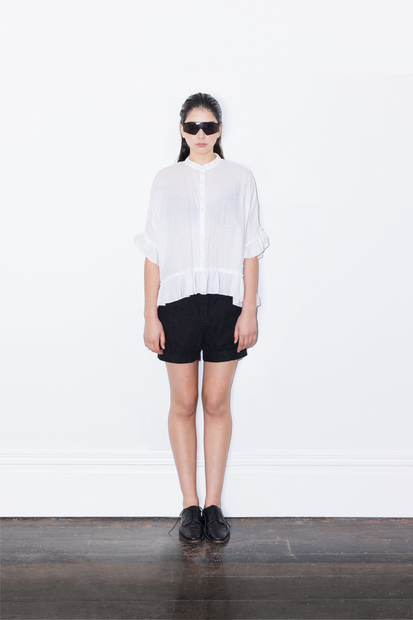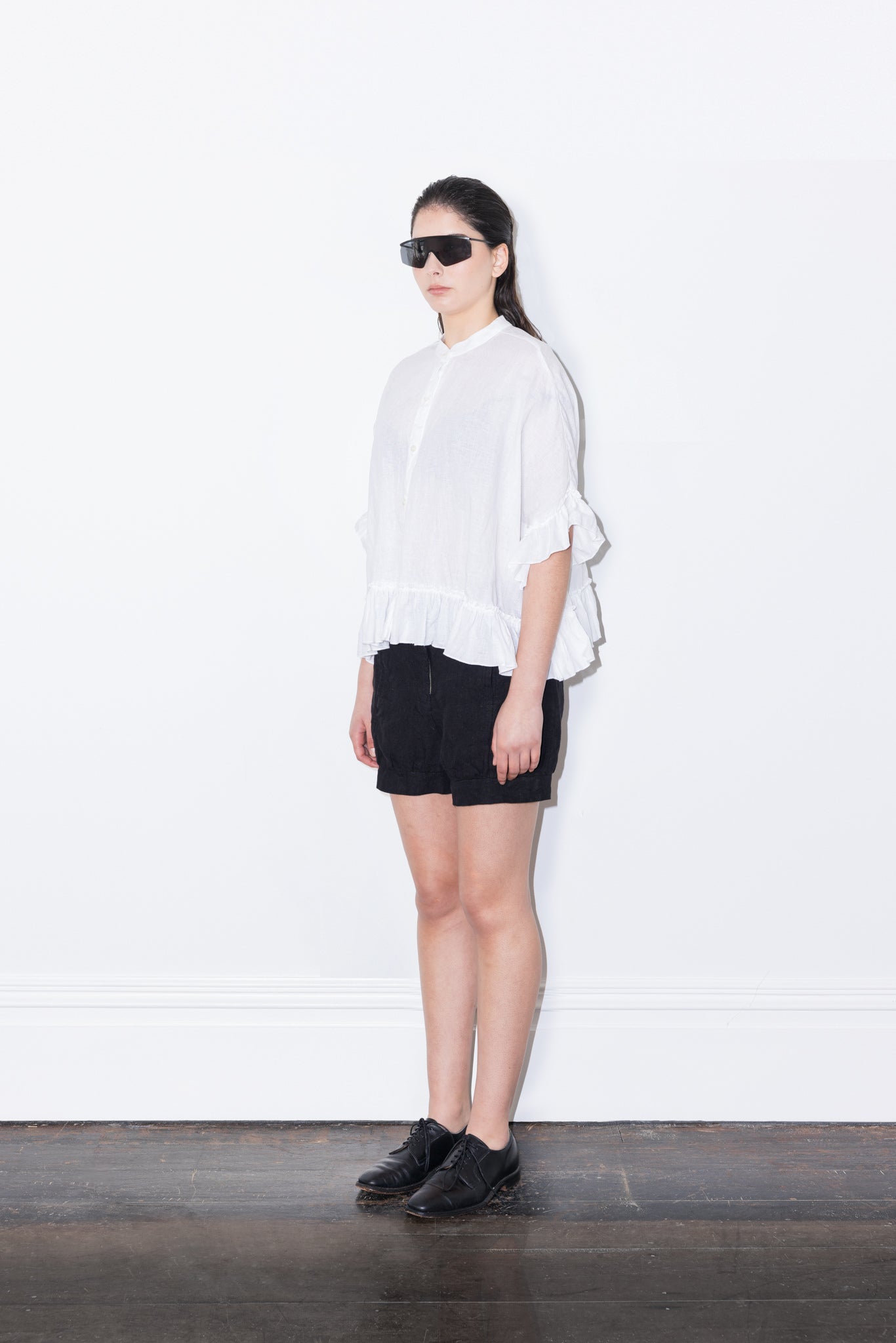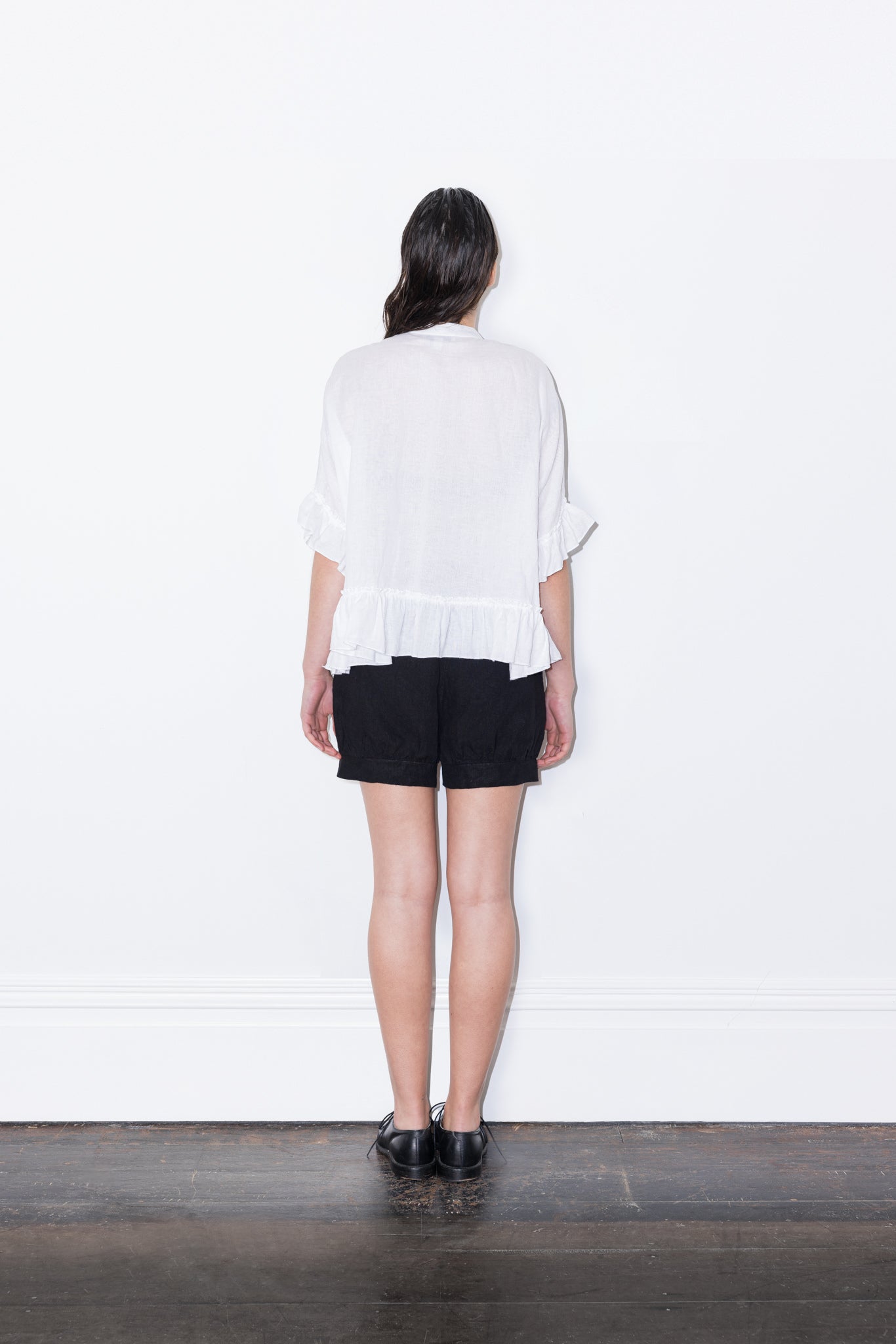 BOX FRILL LINEN BLOUSE 003 - WHITE