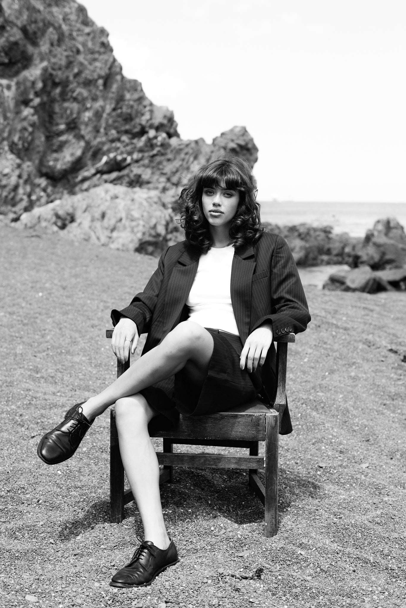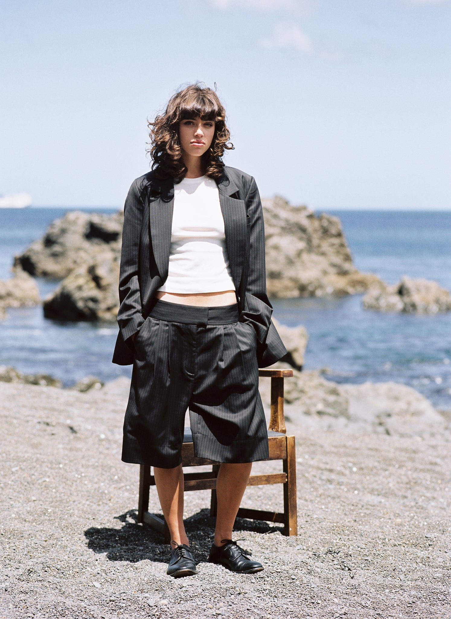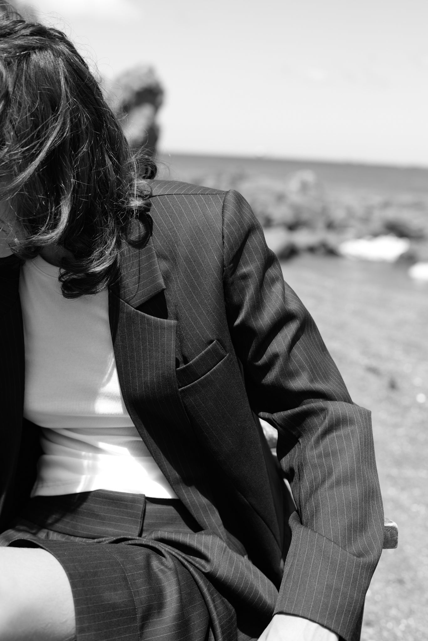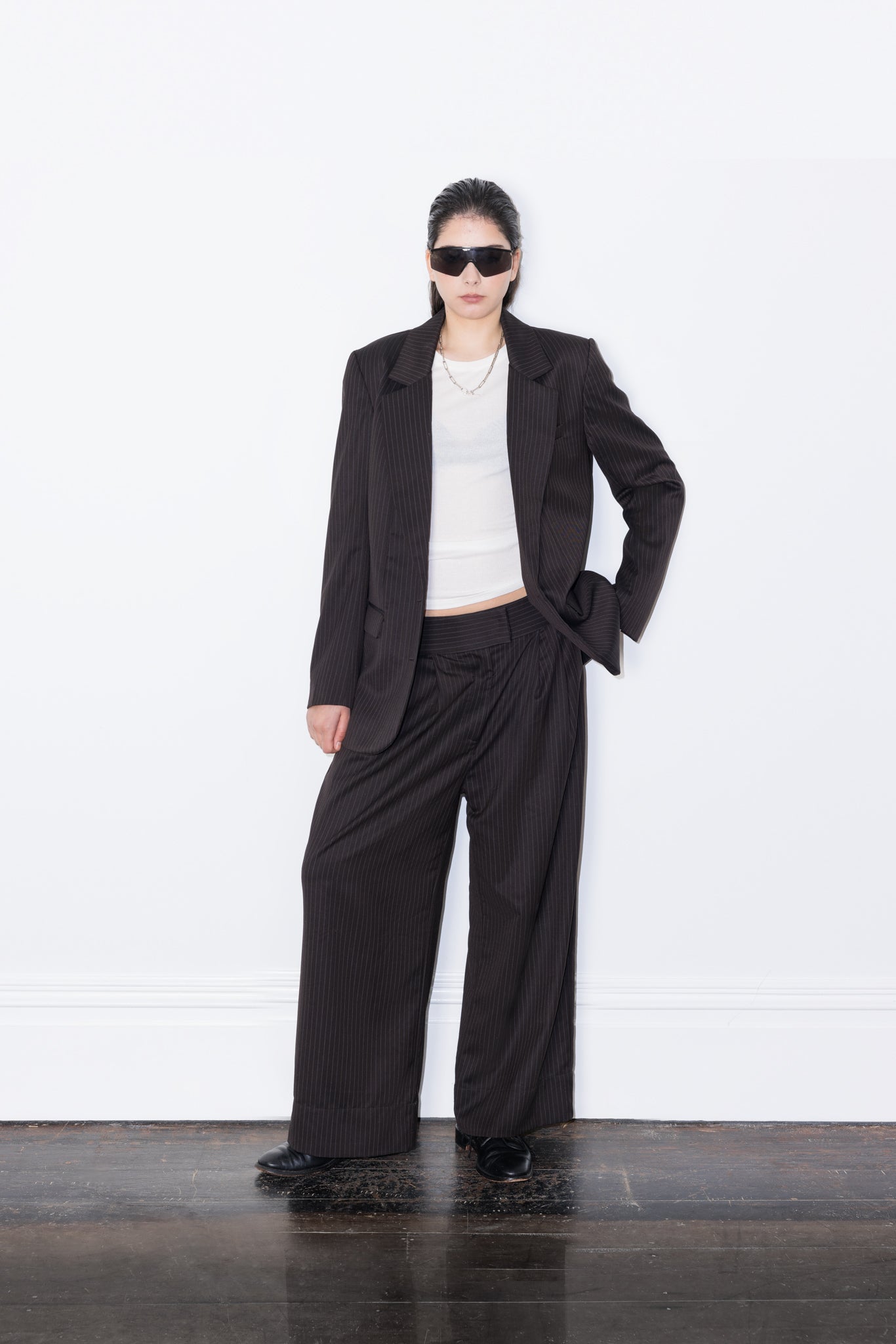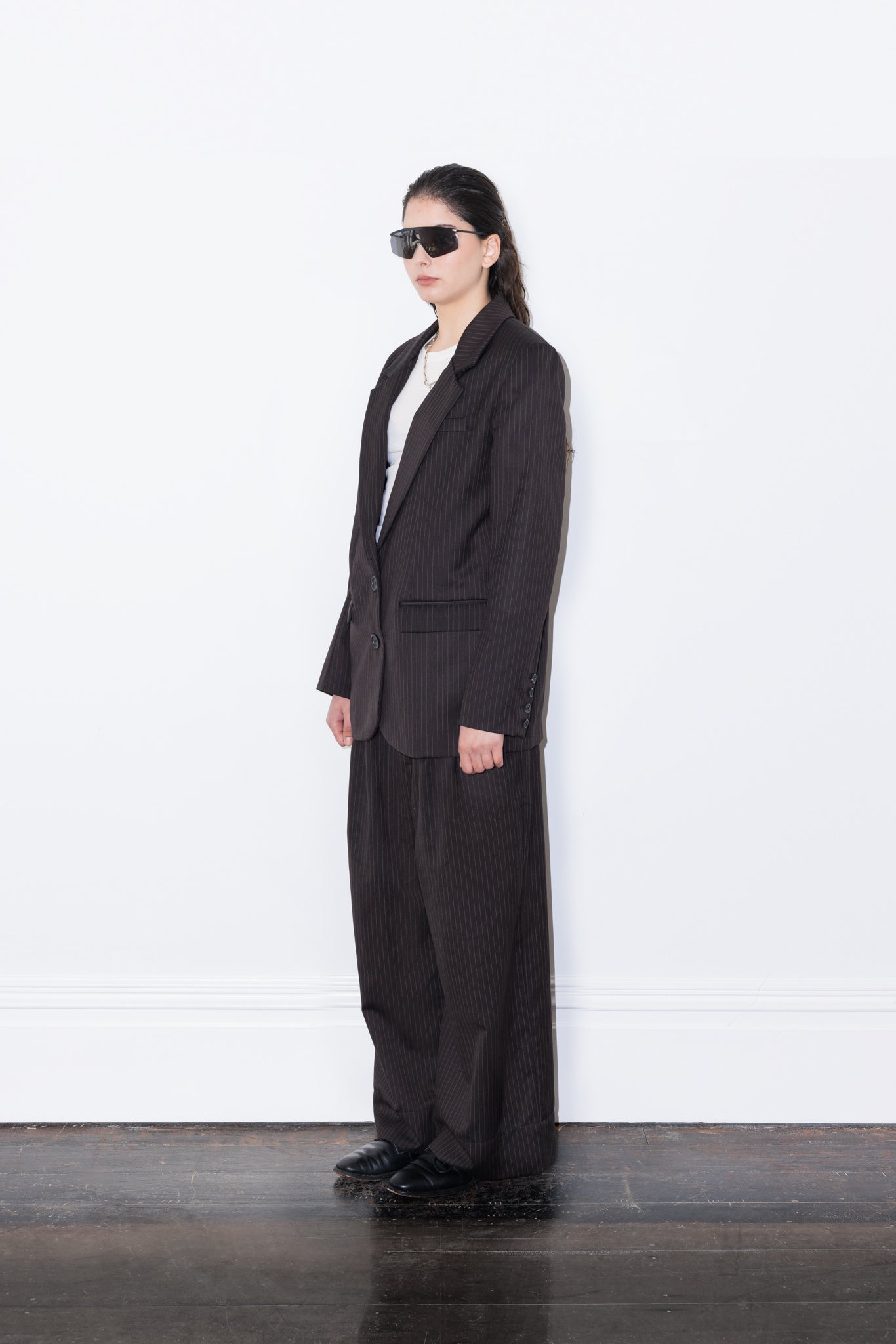 - Single-breasted suit blazer with front button fastening