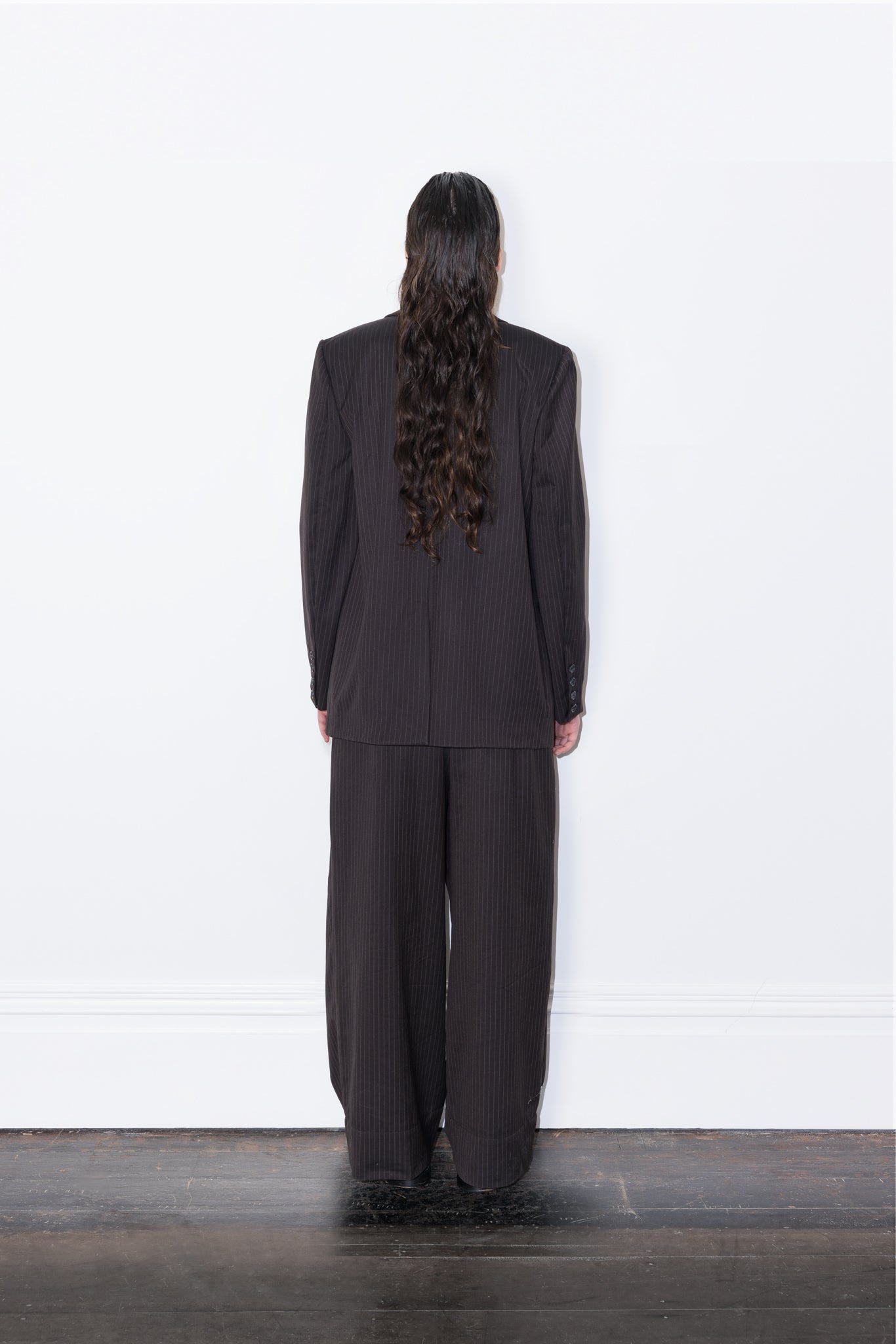 -100% Pinstripe brown Japanese wool